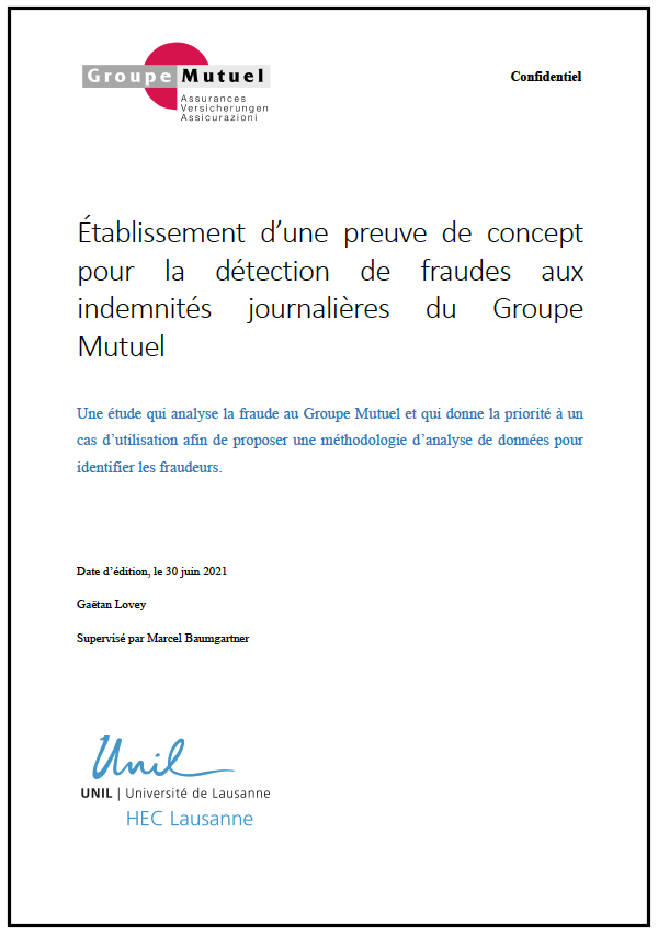 Lovey, G. (2021). Établissement d’une preuve de concept pour la détection de fraudes aux indemnités journalières du Groupe Mutuel (Travail de Master). Faculté des HEC, Lausanne.